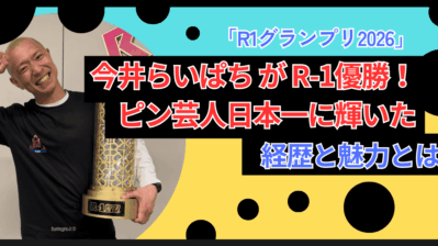 R-1グランプリ2026で史上最多6171人の頂点に立った今井らいぱち。彼の優勝の軌跡や元「ヒガシ逢ウサカ」時代からの経歴、背水の陣で挑んだ大会の裏側、ネットの反響まで詳しく解説します。3児のパパとして奮闘する姿や仲間との絆にも注目です!