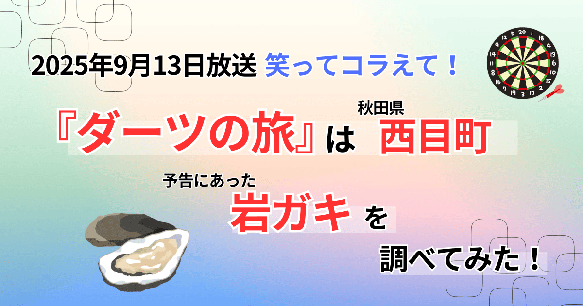 今回は、9月13日放送の『笑ってコラえて!』の『ダーツの旅』で、内田篤人さんが訪れる秋田県西目町と、そこで食されるであろう「今シーズン最後の岩ガキ」について調べてみました。