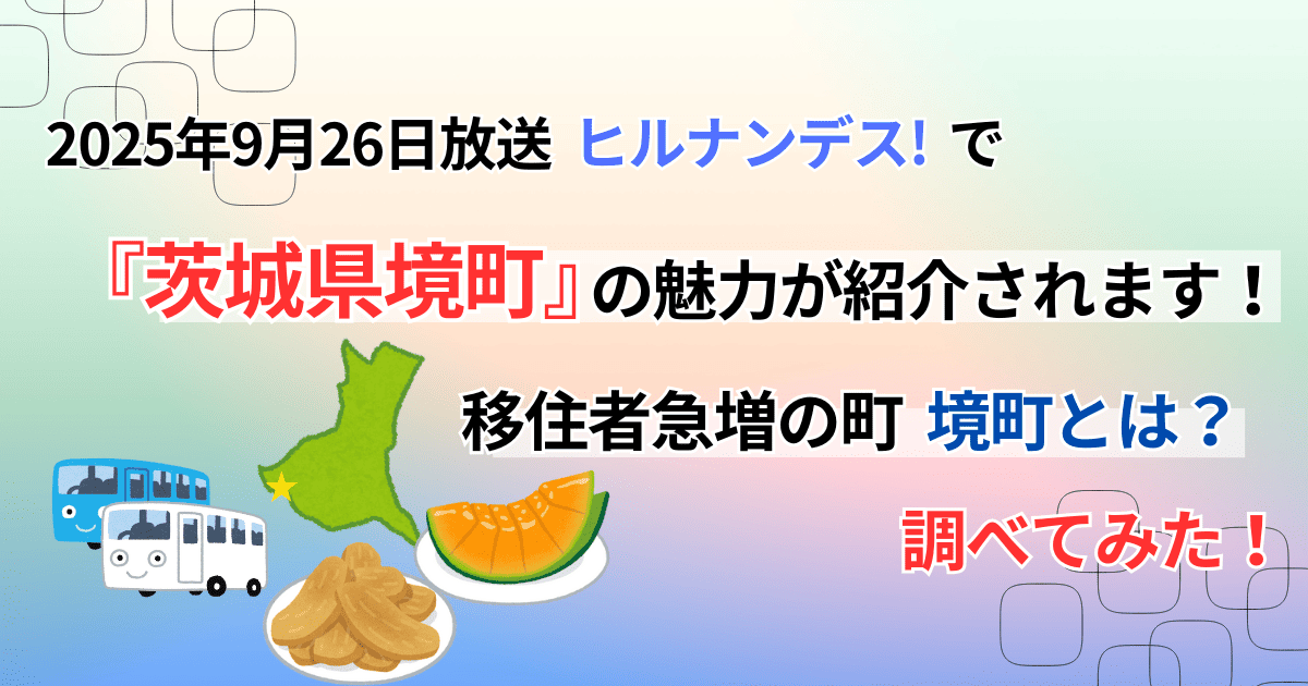 9月26日 金曜 11:55 ~ 日テレで放送の『ヒルナンデス!』で特集される茨城県境町は、