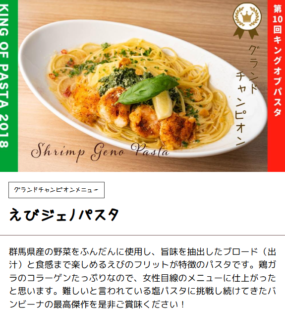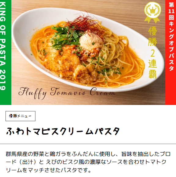 この店は地元のパスタコンテスト「キングオブパスタ」で