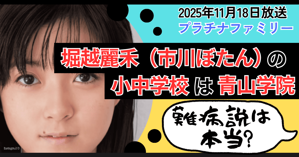 番組にはファミリーで登場ということなのですが、今回は長女の堀越麗禾(市川ぼたん)さんの出身校や、気になる難病について調査してみたいと思います。