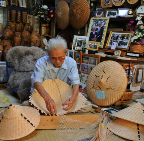 皆地笠(みなちがさ)を、長年、芝安雄さんが唯一の職人として守り続けてきました。
