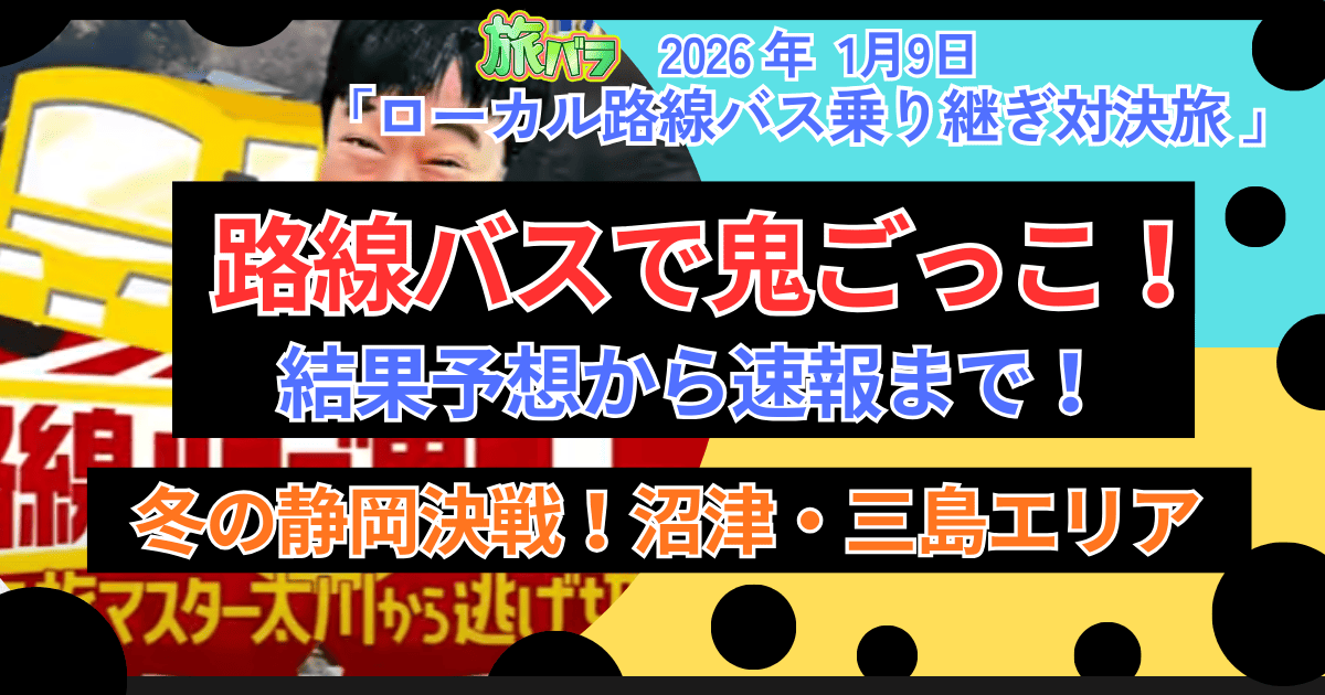 1月9日(金)放送の「路線バスで鬼ごっこ!〜バス旅マスター太川から逃げ切れ〜冬の静岡決戦!」