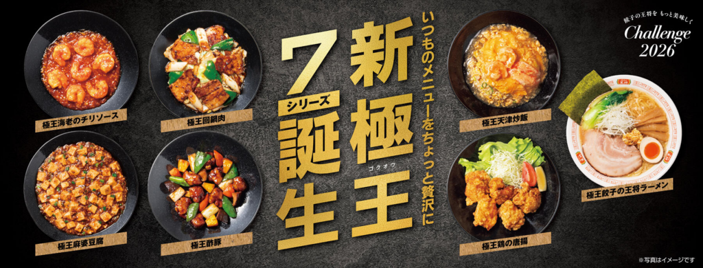 「餃子の王将を極める」をコンセプトにしたプレミアムライン「極王(ごくおう)シリーズ」。