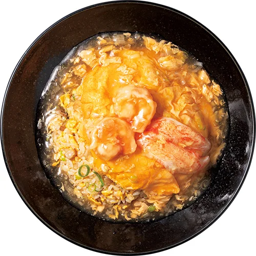 「極王」版では、とろとろ・ふんわりの玉子あんかけに、海老とカニカマをトッピング。