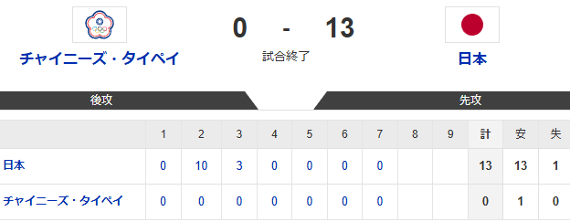 3月6日初戦の台湾戦で13-0という衝撃的な「七回コールド勝ち」を収めました。