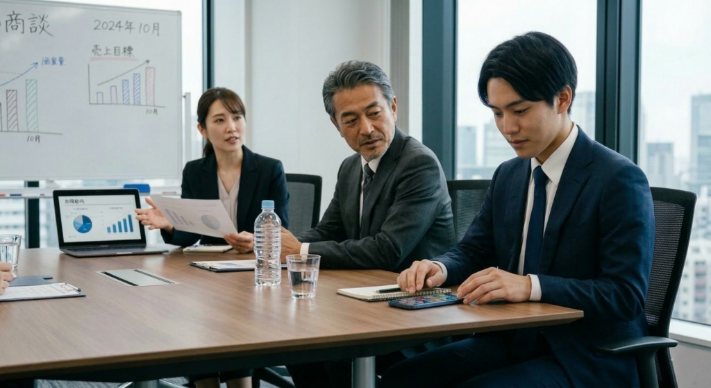 ビジネスの現場、特に会議や商談の場では、スマホではなく腕時計で時間を確認するのが最もスマートであり、相手に安心感を与えます。