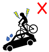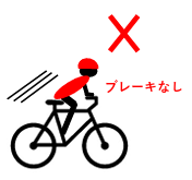 手放し運転やウイリー走行など危害を及ぼす乗り方や、ブレーキが故障した(無い)自転車の運転は禁止です。
