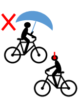 片手運転になる傘差しや、周囲の音が聞こえなくなるイヤホン等の使用は禁止されています(片耳や骨伝導等で周囲の音が聞こえる場合は除く)。