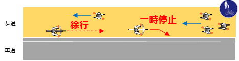 例外的に歩道を通行できる場合でも、歩道の「車道寄り」または「指定部分」を徐行し、