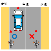 (白の二本線の歩行者用路側帯は通行不可)。