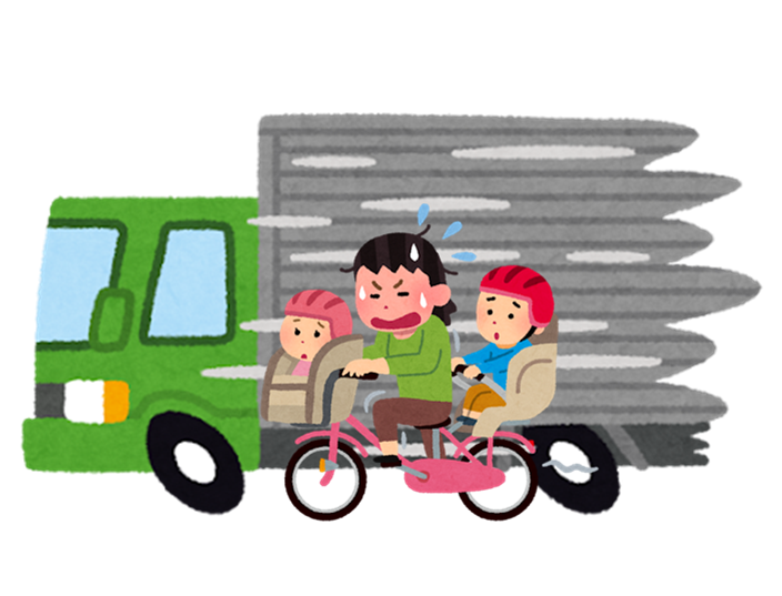たとえば、前後に子どもを乗せた電動アシスト自転車は総重量が非常に重く、バランスを崩しやすいです。